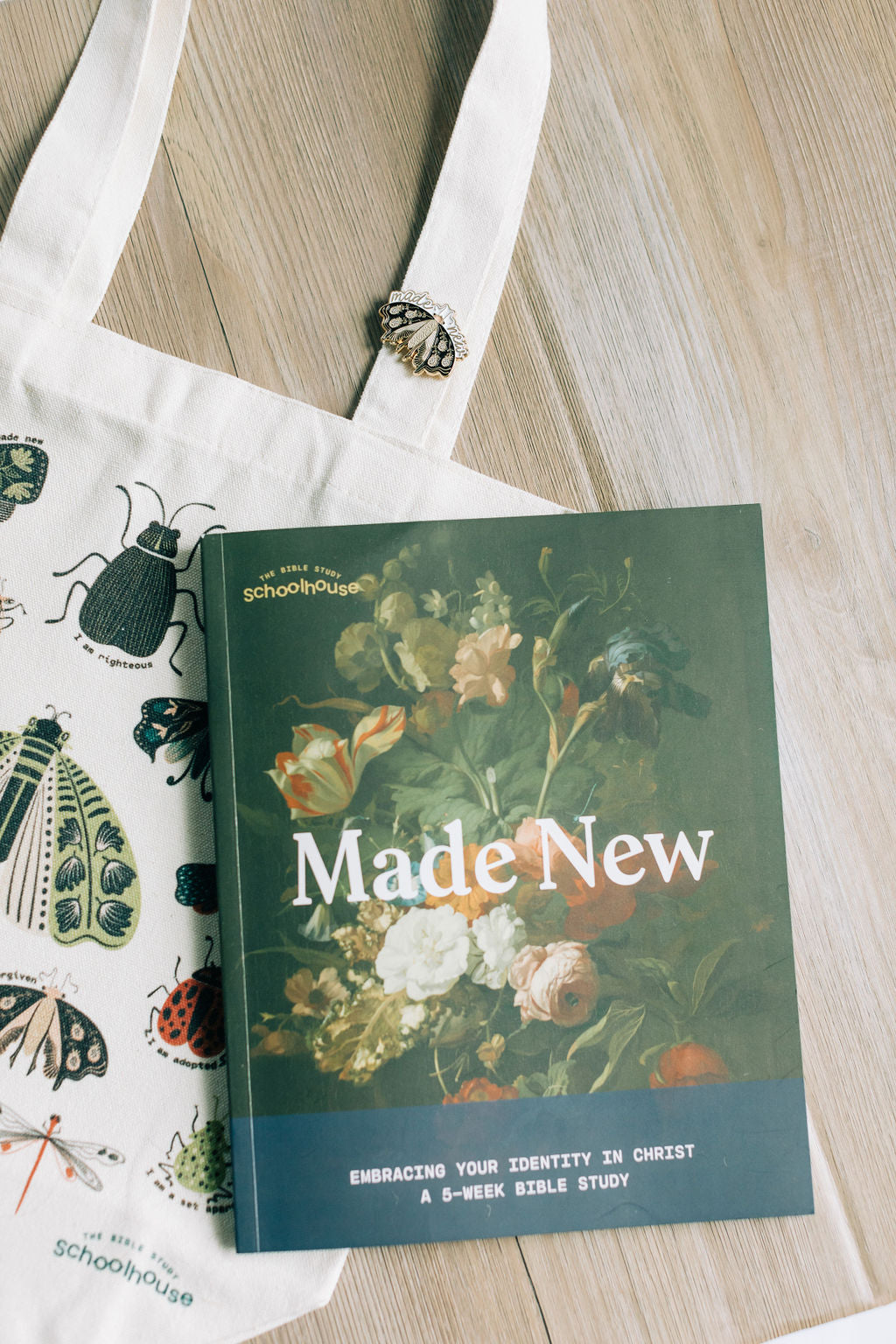 Those who are in Christ are made new! Wear this reminder of your new identity in Christ on your jacket or tote bag.